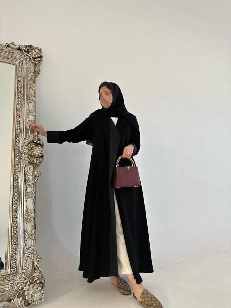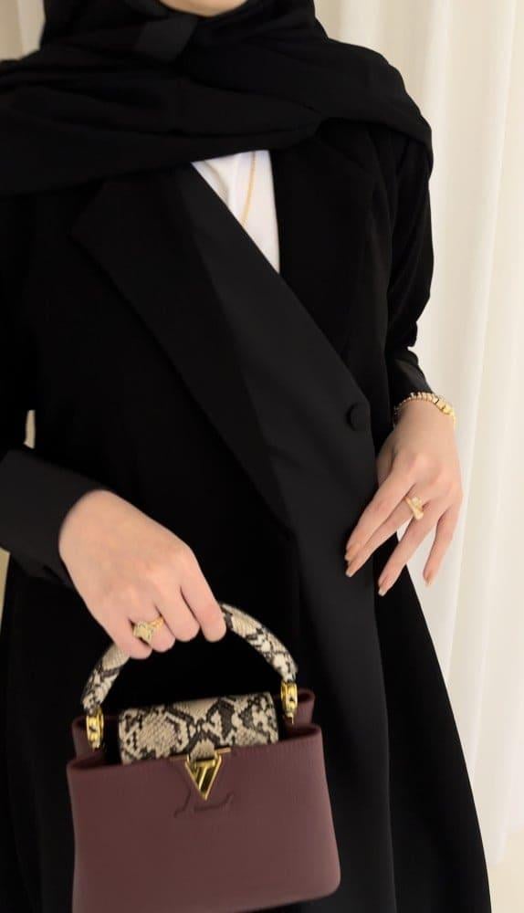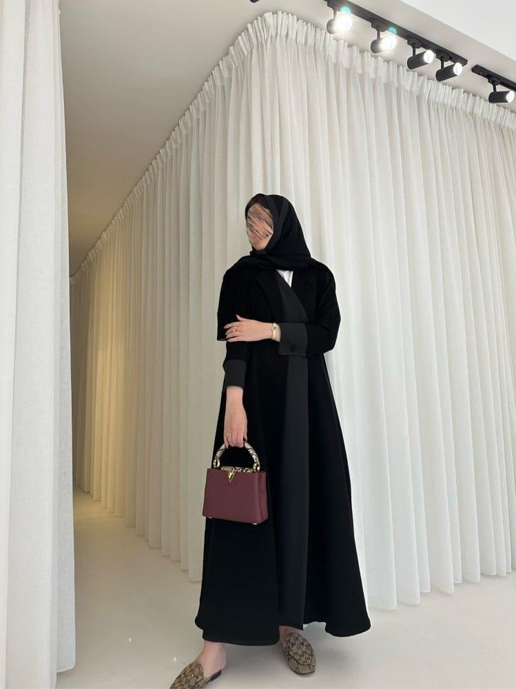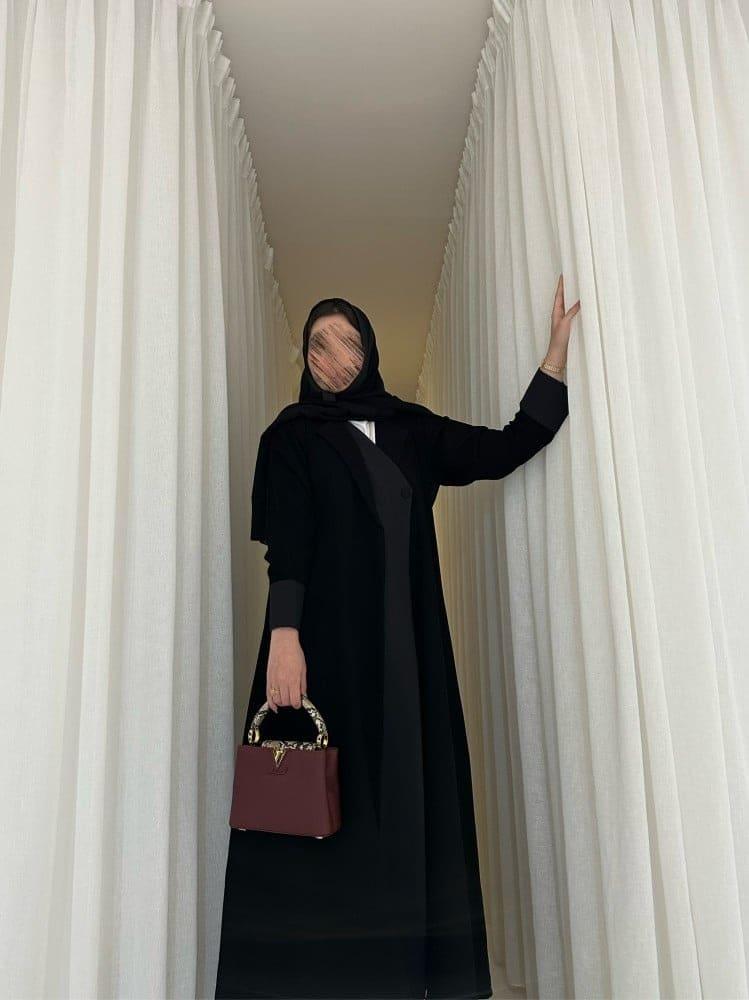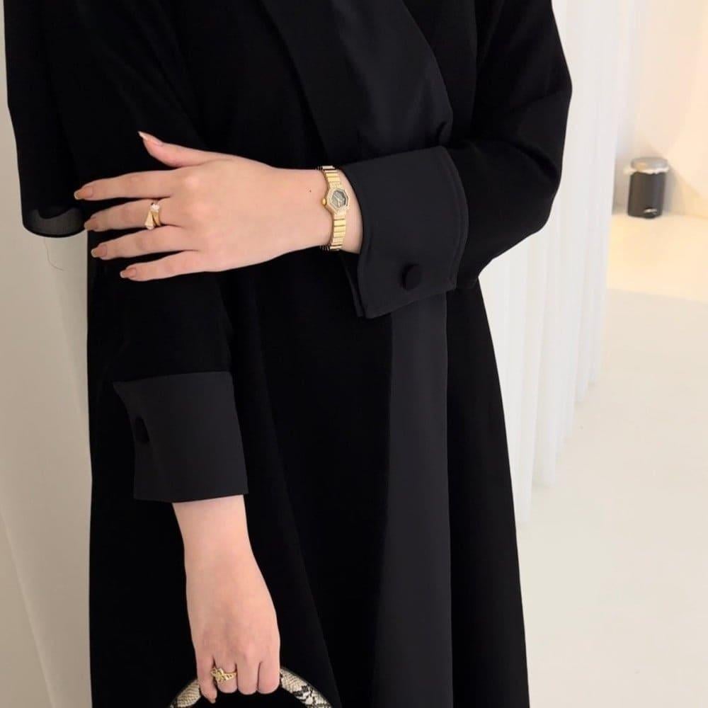 - الأزرار مخفية باحتراف داخل التصميم، لتمنحك تحكّمًا كاملاً مع الحفاظ على بساطة الشكل الخارجي وأناقة العباية في كل تفصيل.