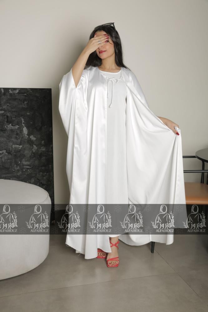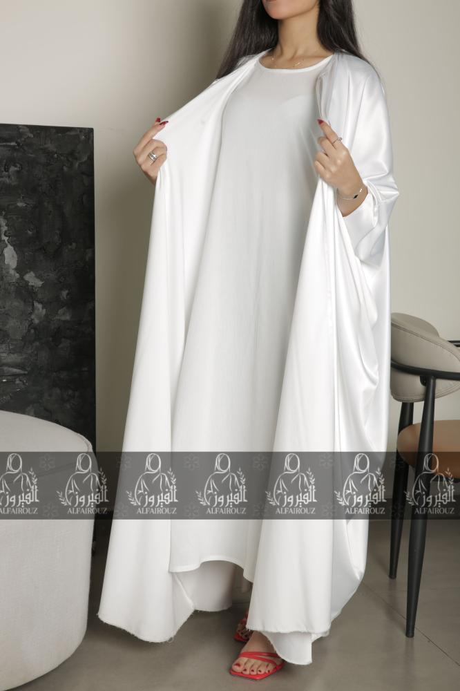 - يأتي فستان تحت العباية ابيض باللون الأبيض النقي الذي يمنح لمسة من الرقي والصفاء مع مظهر بسيط وأنيق.